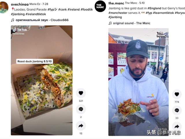 最近,中国的一种街头小吃“卷”走出了国门。在抖音,#煎饼(煎饼)和#煎饼果子(煎饼果子)是热门话题,获得了近4000万的播放量,看煎饼,贪吃煎饼,煎饼卷,尝试自己做煎饼果子...屏幕上全是外国人的好奇。