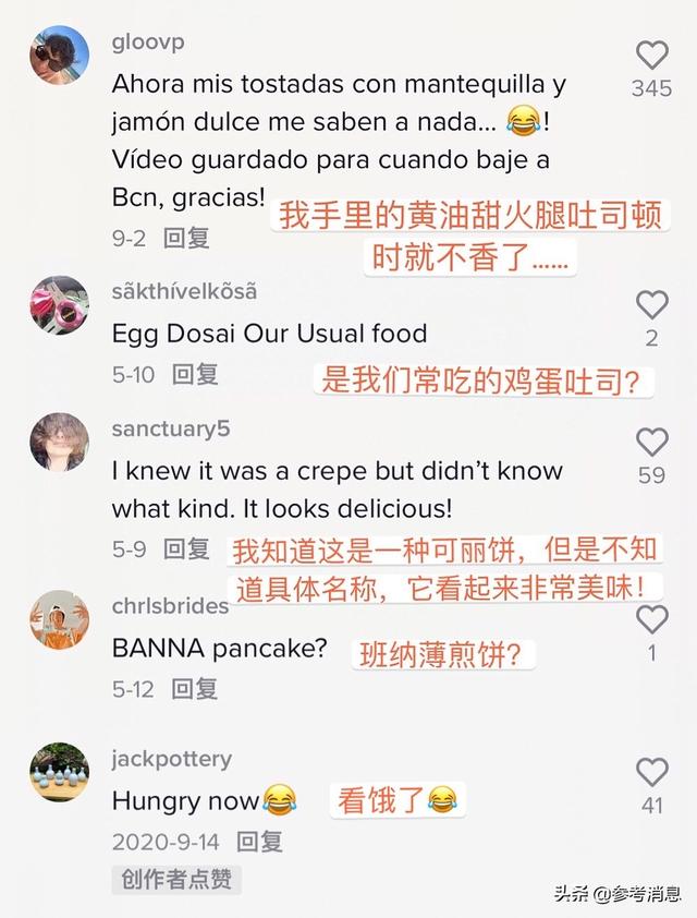 来自Tiktok用户的热情评论