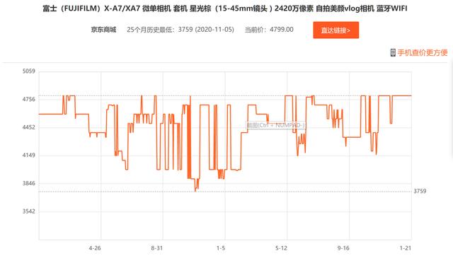 在之前的视频中,我记得有人评价富士XA7不错,它是一款5000元左右性价比很高的微单。我现在看着是4799元,但是你要注意,20年双十一卖3700元。它是一个2400万像素的传感器,而不是XT4,XS10和XT30的2600万像素传感器,并且缺少几个电影模拟。