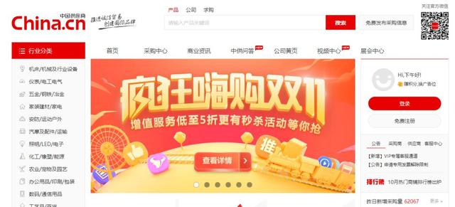 国内综合性B2B电子商务平台,涵盖全行业品类:工业品、原材料、家居用品、商务服务等。为供应商提供免费的企业展厅,免费的产品发布,移动营销,深度推广。...