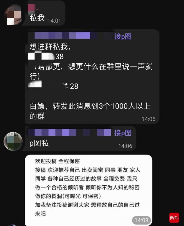 也许这不是孤例。他在接受南都记者蒋群采访时表示,贴吧和推特上类似的群条目比较多:“不能说这个群,应该叫这个群,这个博主。只是其中一个平台。没有群体就没有别的。”