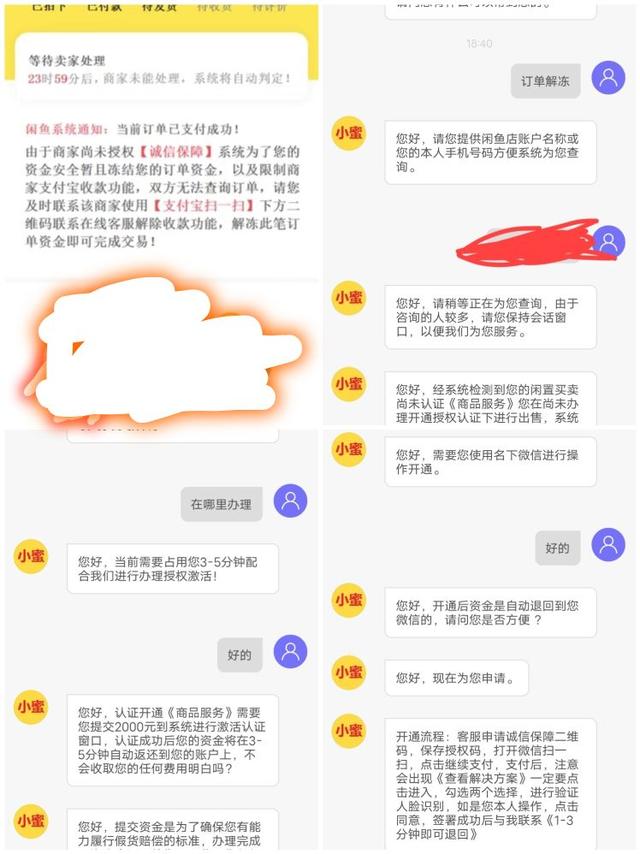 今天收到淘宝账号的消息,想买我挂在闲鱼的养生锅。问了一些简单的问题后,我说我要下单了。后来被告知我的闲鱼账户出了问题,他的资金被冻结了。给我发个截图,要求用支付宝账号扫描二维码联系客服解决,就是左上角的图。