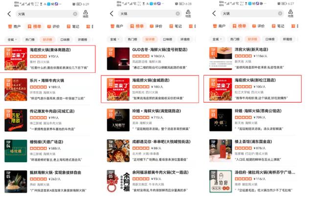 各大城市的口味榜和好评榜都有被海底捞主宰的恐惧。在贝尚广深、南靖这样的新一线城市,赞单上几乎都是海底捞。
