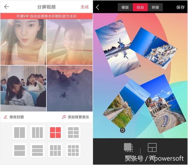 通过它的jigsaw/video功能,我们可以轻松制作合拍视频,并且可以为视频设置不同的比例,添加各种不同颜色和大小的合拍布局和边框,让视频更加丰富多彩。