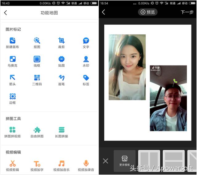 此外,它还提供了抠图、拼图和去除水印的功能。操作很简单。只需导入图片,按照软件提供的简单教程,简单的几张图片就能做出完美的图片,简直就是手机界的PS!