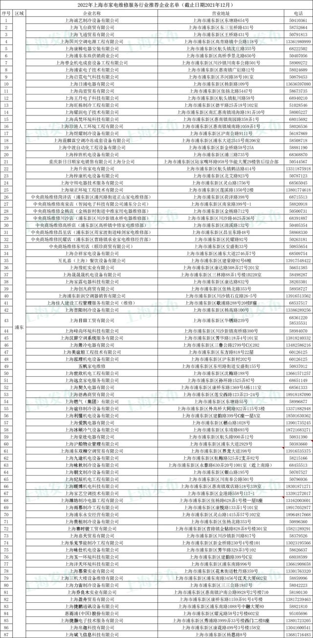 2022年沪上家电维修服务行业推荐企业名单