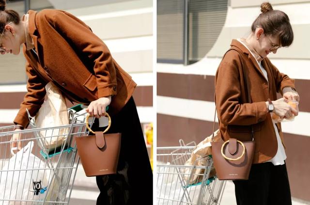 这个“竹篮子”也很值得。竹圈+复古牛皮是大品牌常见的设计。包包可以单肩手提,实用性很强。