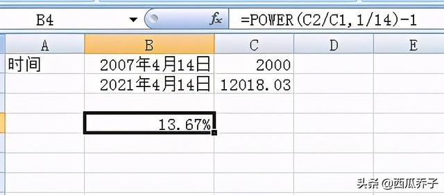 但这太没礼貌了。至少我们是专业人士。需要打开excel计算年化收益率。毕竟经常有朋友来跟我们说不知道年化收益率怎么算。我只是拿这个案例的简化现金流作为计算。可以看看下图右上角的公式。