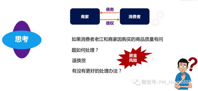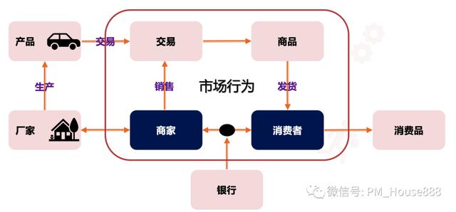 在这个图中我们可以发现,商家通过厂家生产,组装零件,形成汽车(产品)。当这个产品通过商家卖给用户或消费者时,这个产品就成为了一种商业商品,市场行为就发生了。在整个市场行为中,有商家的销售行为,也有买家的购买行为,还有涉及双方的交易环节。在这种市场行为中,因为买卖关系,商家和买家之间形成了债券和债务关系。我们来看一个和我们息息相关的例子: