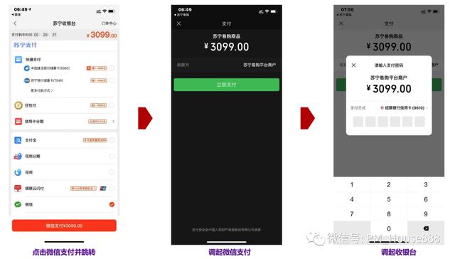 接下来是从Suning.cn到微信APP的支付流程: