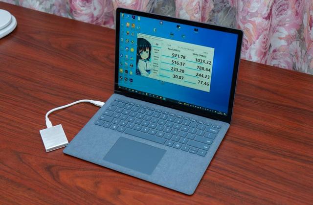 然后用CrystalDiskMark 7测试了空盘的速度,写入速度达到了1033MB/s,比官方宣传的1030 MB/s要快,这个速度是可以用的,通过USB连接笔记本的速度基本接近一般的板载NV固态。