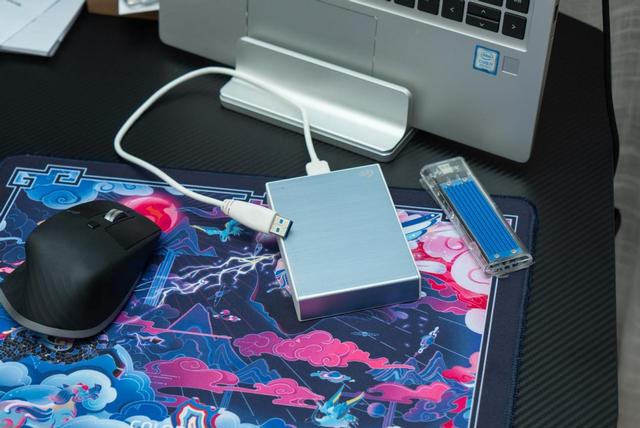 将笔记本中原有的512GB固态硬盘放入Orico的透明硬盘盒中,做一个移动硬盘。我把日常用的资料放到了另一个4TB希捷机械硬盘里。