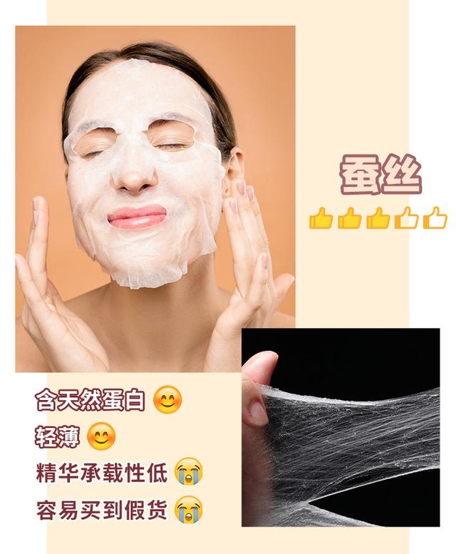 几年前,热丝还在。蚕丝本身作为一种蛋白质纤维,除了轻盈、触感柔软之外,还对皮肤有一定的保湿作用。蚕丝常被用来制作医用伤口敷料,可见其优越性。但因为轻薄,一些精华液的承载能力相对有限。如果精华太多,更容易顺着膜纸流到颈部。另外需要注意的是,市面上很多所谓的蚕丝面膜并不是完全100%由蚕丝制成的,所以在购买的时候一定要记得辨别真伪!