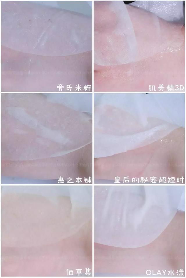 比较厚的那一组庞氏米翠膜纸还是很少米糠的,感觉很自然,还挺放心的~集美晶的3D膜纸有中缝,整张纸都是立体的。惠芝本店,佰草集,玉兰油都是摸起来比较软,女王的秘密可能是因为多装的精华不多,膜纸也比较厚。