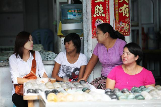 中国和缅甸的玉器商人会把玉器带到这里进行交易,在这里,一块块看似不起眼的玉坯被装在麻袋里进行交易。