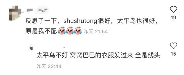 于是太平鸟成了拉臀的猪队友,/童依旧被大家喜爱。不是女生偏心。/童只需做好自己,太平鸟却做不好质量和品控,友谊的小船翻了就翻了。