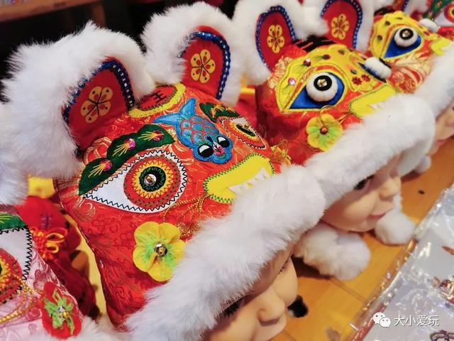 除了各种款式的老虎帽,还有很多虎元素的小玩意,老虎挂件,摆件,传统的老虎布偶,小时候玩的摇铃,都很适合孩子玩。