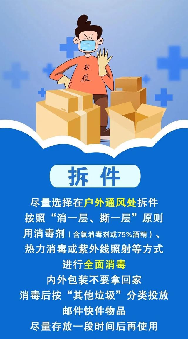 3。[/s2/]谨慎购买进口商品。请尽量减少来自疫情风险高的境外国家和地区的邮购物品。如确需从境外邮购或快递,在取拆外包装时要做好个人防护规范,正确佩戴口罩和一次性手套,对外包装进行彻底消毒,或在开箱前静置一段时间,再在进口物品表面擦拭或喷洒消毒剂后使用。