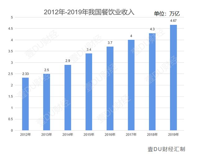 预制菜在中国的兴起主要是因为餐饮业和外卖的快速发展。2012年至2019年,我国餐饮收入从2.33万亿元增长到4.67万亿元,年复合增长率为10.44%,高于GDP增速。