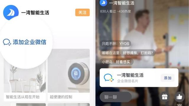 客户还可以在视频号的首页和直播间一键添加员工企业微信。