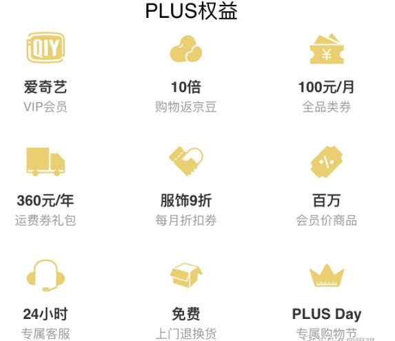 好了,以上九项是目前PLUS会员的权益。个人认为其实每一项权益都是好的,尤其是爱奇艺VIP会员,购物返京豆,运费优惠券套餐。