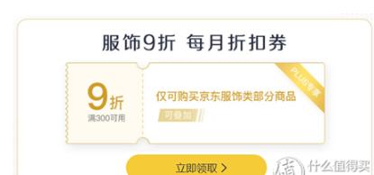 每个PLUS会员从每月1日起可以领取一张服装9折优惠券,只用于服装类商品(具体品类见下图),有效期一个月。