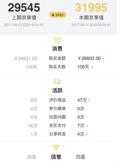 与购物消费相比,其他方面的增长其实可以忽略不计,也就是说,京享的价值主要取决于购物消费,这与之前的增长值本质上是一样的,只是增长值与取值的时间段相比大幅缩水。