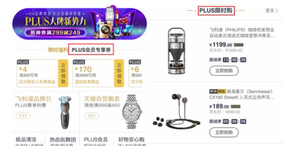 事实上,在JD.COM的许多促销活动中,会有针对PLUS会员的额外优惠券,比普通优惠券更优惠。