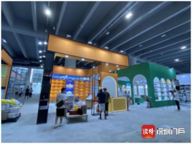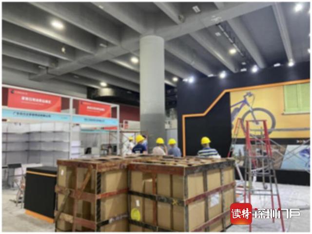 9月23日,工作人员加紧布置广交会B区展位,迎接24日跨境博览会开幕。