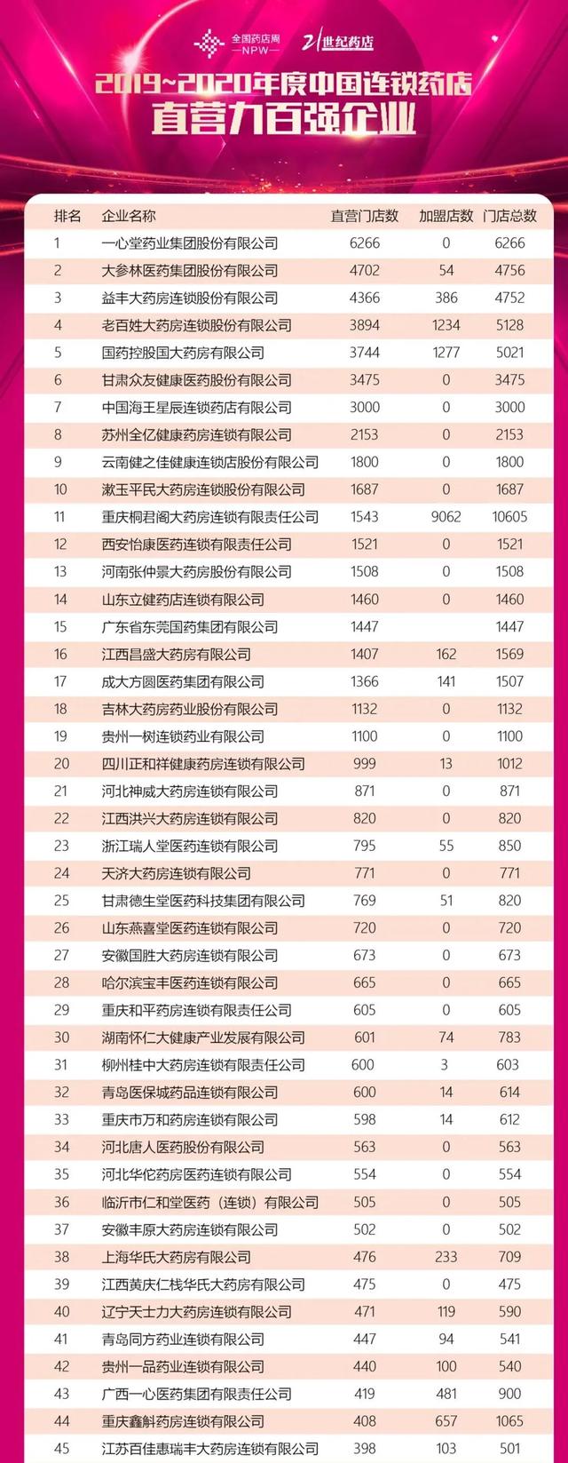 8月26日,在“2020全国药店周”发布会上,业界期待已久的2019-2020中国连锁药店综合实力百强企业和2019-2020中国连锁药店直销企业百强名单揭晓。