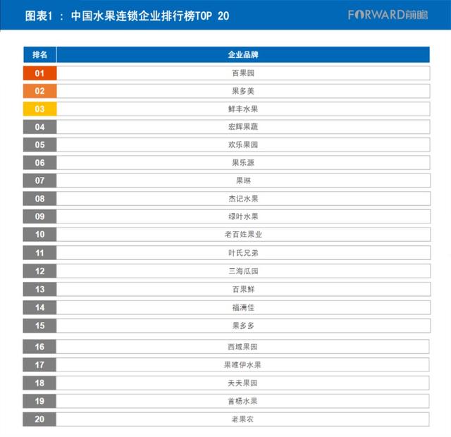 近日,前瞻产业研究院发布的生鲜企业排行榜水果企业20强榜单,选取了以水果采购、批发、贸易、加工为主营业务的连锁企业,综合考虑企业销售额、企业产品质量、企业连锁数量、企业品牌价值等多项指标,对多家水果企业进行了评分和排名。其中百果园排名第一,果多美和鲜丰水果分别排名第二和第三。完整列表如下: