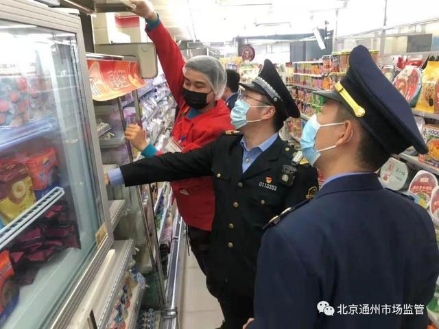 北京通州市场监管局执法人员正在对涉事的7-eleven便利店进行调查。