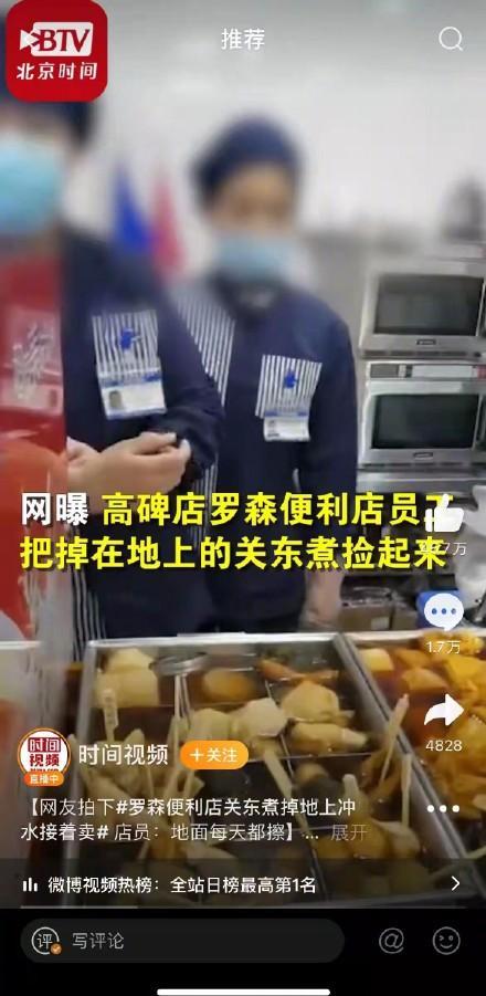 另一家便利店巨头罗森也被曝出“过期包子仍在卖,废弃关东煮再煮”等食品安全问题。媒体曝光的画面显示,罗森便利店的店员捡起掉落的食物,洗净后放回锅里。