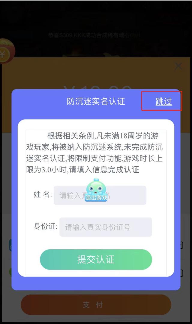 值得注意的是,在上述未授权游戏中,《彼岸的未来》和《龙争虎斗》仍存在未实名认证付费充值的问题。其中,在《彼岸的未来》中,玩家只需通过手机号点击“一键登录”即可完成游戏账号注册,玩家还可以点击实名认证窗口右上角的“跳过”按钮,无需实名认证即可自由玩游戏。游戏充值时,会在“彼岸未来”页面再次弹出实名认证窗口,但你仍然可以选择跳过。选择充值金额后,会顺利跳转到对应的充值确认页面,全程畅通无阻。