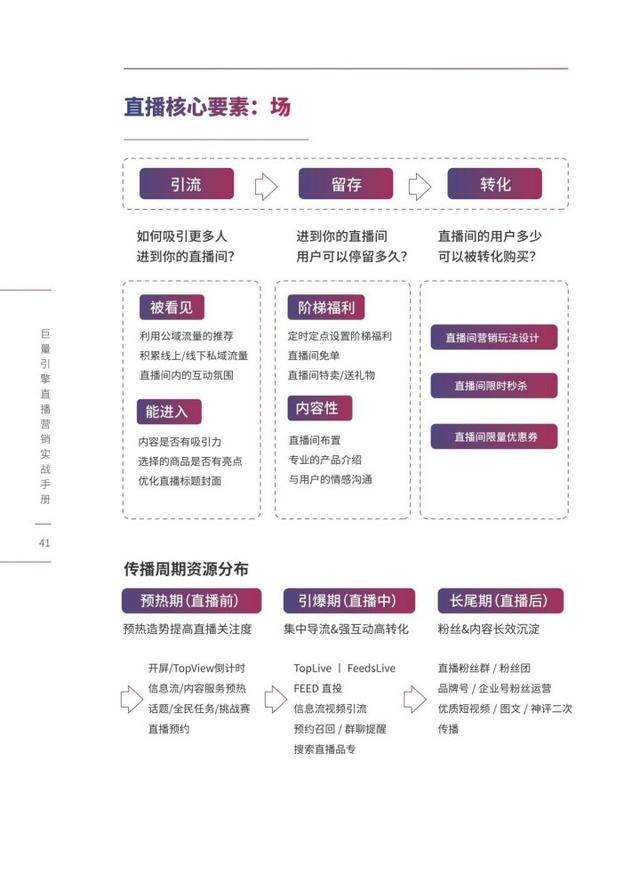活动:关于直播期间的引流,平台有多种引流方式可以引流到直播间,比如推荐流量、关注、城市、直播广场等渠道,引导自然流量进入直播间。