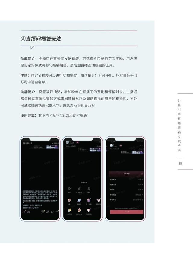 直播限时秒杀,直播满减活动,直播优惠券,直播红包,直播福袋,直播红包裂变,看播任务,每场都给出了详细的设置步骤。以限时秒杀游戏为例,主播可以在移动端直接创建和添加直播专属限时特卖商品,在直播商品设置页面设置参与商品的各SKU的秒杀价格、秒杀库存、限购数量、秒杀时间等相关信息。可以提高用户留存率。