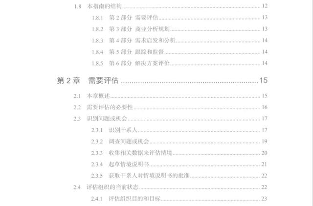 该指南涵盖了业务分析的五个领域,即需求评估、业务分析规划、需求启发与分析、跟踪与监控、解决方案评估。在每一个领域都有一系列明确规定的支助任务。