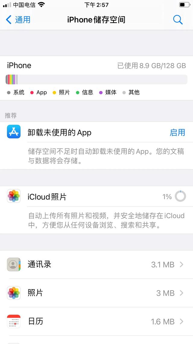 存成8.9G,剩下120 G,和新手机没什么区别。