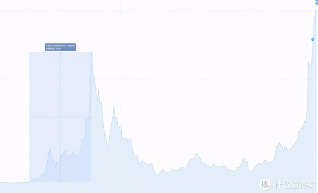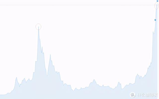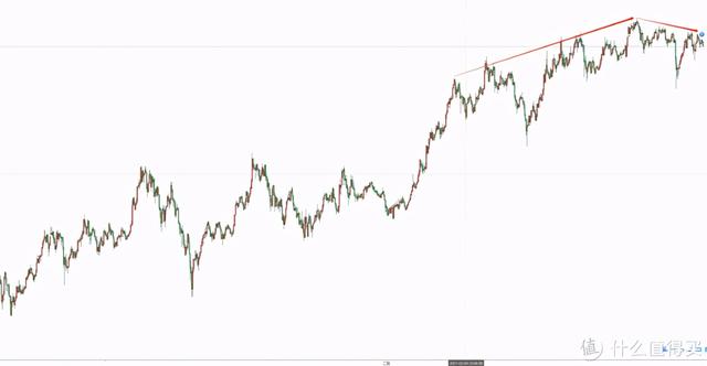 在下面放一张周线价格图。第一次见顶是在2018年1月8日,达到最高价后一路下跌。这次也是在2021年2月12日形成了一个峰值。2月12日-2月15日开始回调,2月15日12点到达底部开始上涨。但是这次上涨的顶部并没有超过上次上涨的顶部。从上图来看,价格走势由涨转跌。
