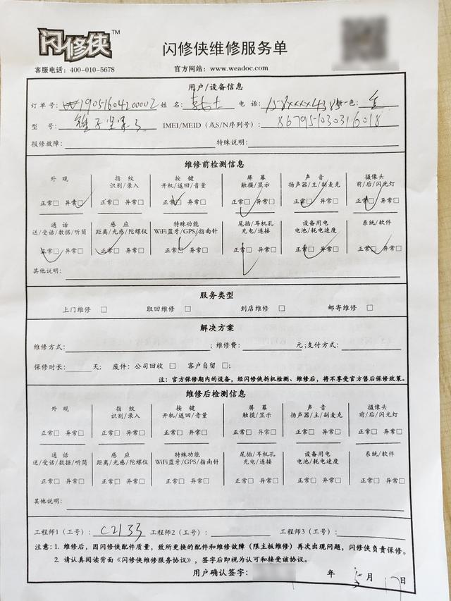 回收宝要求员工全程监控,出示胸卡。回收宝没有APP,给了我一纸维修单。工作人员通过人工检查的方式逐项核对维修单,最后在双方确认无误后让我签字。