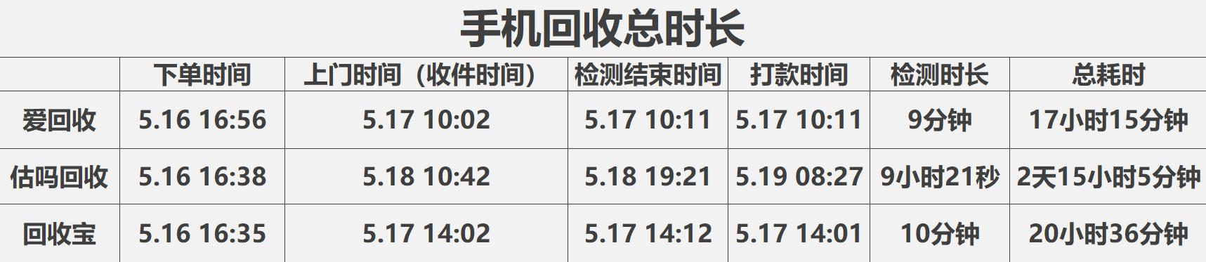 经过对比,支持回收的方式最多,包括门店回收、回收机回收、上门回收、快递回收。回收宝还支持上门回收和快递回收,预估回收只支持快递回收。这里有一个解释。上门回收是质检员上门检查,不是上门快递服务。