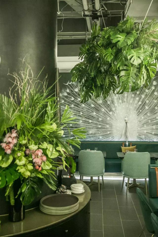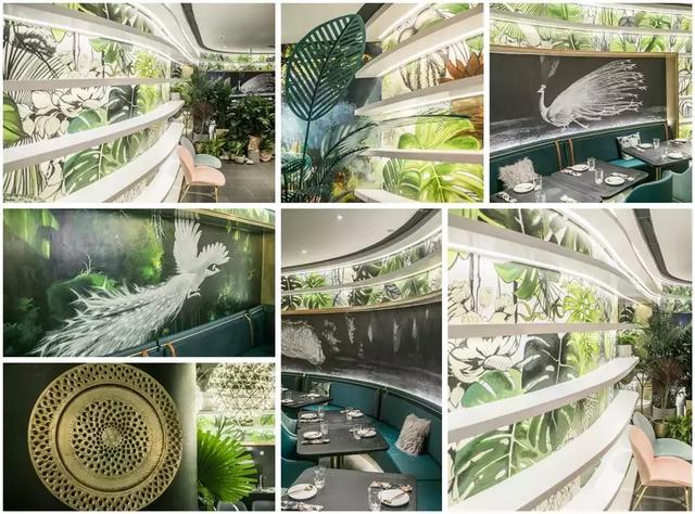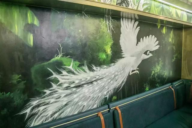 手绘壁画!这家店一整面墙都是白孔雀,栩栩如生,充满童话色彩!