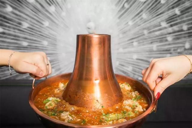 独特的金闪闪铜锅,里面装的是火烧云老板娘独特的酱料紧紧包裹的热辣嫩鸡,锁住了所有最好的味道。尝一口你就知道这锅值得翘首以待,值得排队等待!