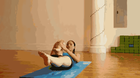 1.坐在瑜伽垫上,拉一个膝关节;