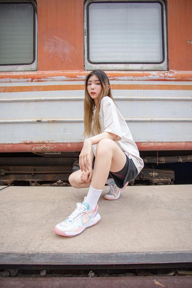 运动背心搭配休闲裤是清爽活力的运动风,浅粉色Jordan Delta Breathe在黑色连衣裙的衬托下更加抢眼。