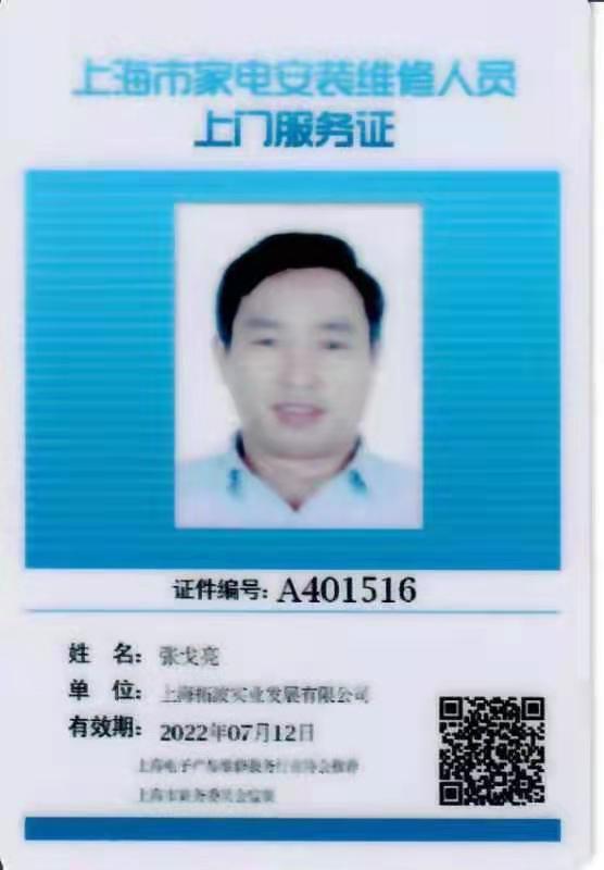 上海家电安装维修人员上门服务证
