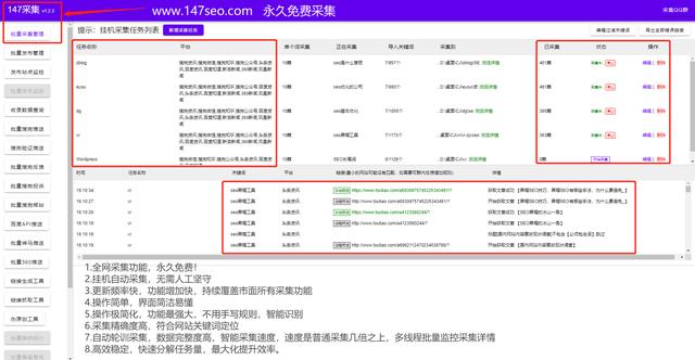 与其他文章收藏工具相比,该工具使用起来特别简单,只需输入关键词即可收藏(文章收藏工具自带关键词收藏功能)。只需设置任务,自动挂机!