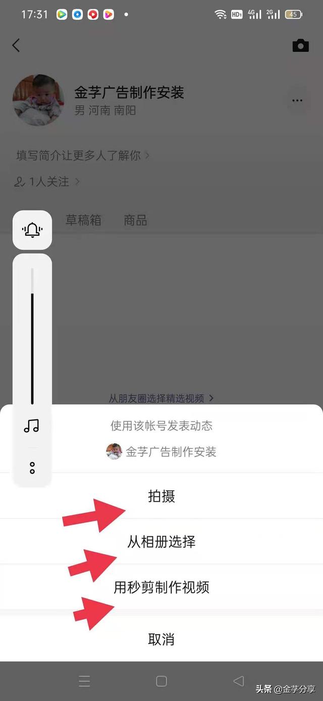 第四,创建后会有一个视频账号,然后点击右上角的照片图标,再点击发布视频。