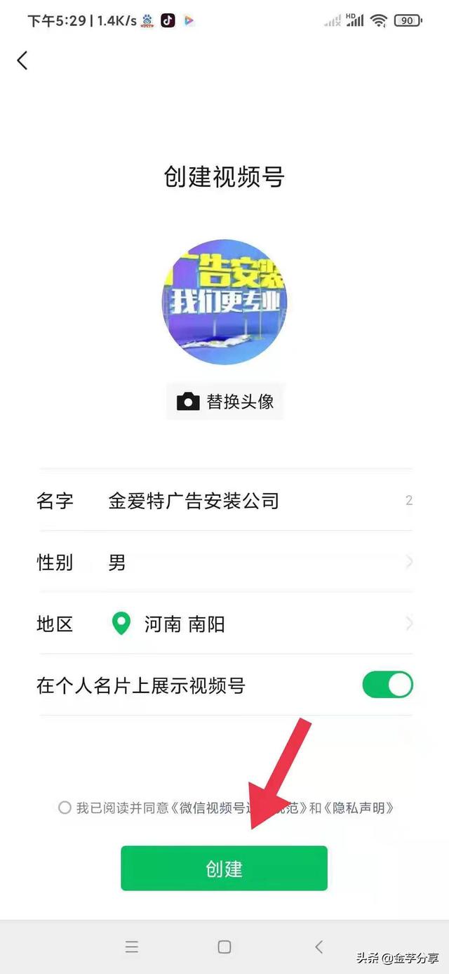 第三:进去显示创建视频号,勾选后点击创建。