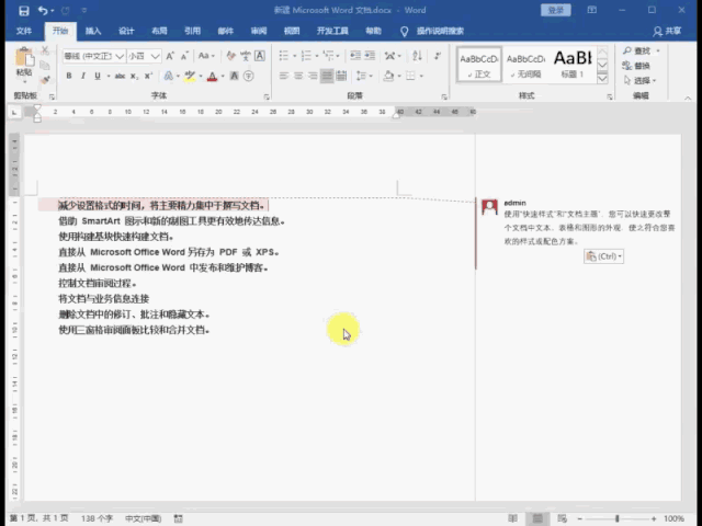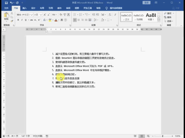 首先,选择文本内容,然后单击菜单栏中的开始选项卡,单击段落组中的项目符号按钮,并从下拉列表中选择无。